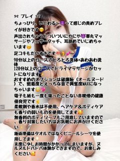 体を絡み合わせながらの刺激的なボディエステに加え、本格的な技術力あるオイルマッサージで、体の疲れも取り除く、Wハイブリッドな快感をお届けいたします。 巨乳・巨尻を駆使した顔面騎乗やパイズリなどの圧迫プレイ、乳首舐め等の上半身濃厚リップサー ビス、睾丸マッサージ等の回春マッサージまで全て基本サービス。 更に女性へのソフトタッチも無料となっています。 。o○ .。o● .。o○ .。o○ .。o○ .。o○ .。o●.。oo○ .。o● .。oo○ ■店舗概要■ ごほうびSPA池袋店 【オフィシャルHP】https://star-group.co.jp/service/gohoubi/ikebukuro/ageauth/ 【営業時間】朝9時~翌5時(最終) 【TEL】03-5957-5582 | |