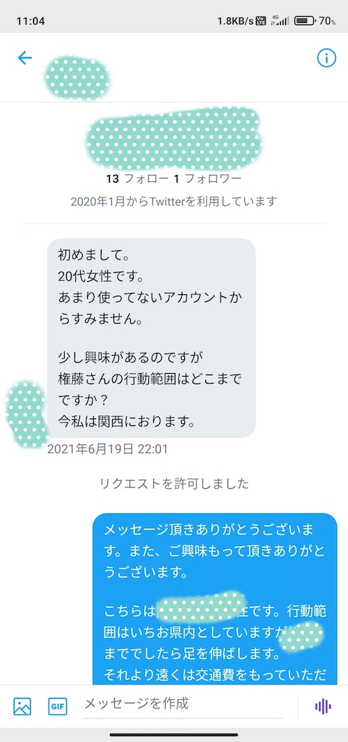 そのTwitterから直接メッセージが来ました。