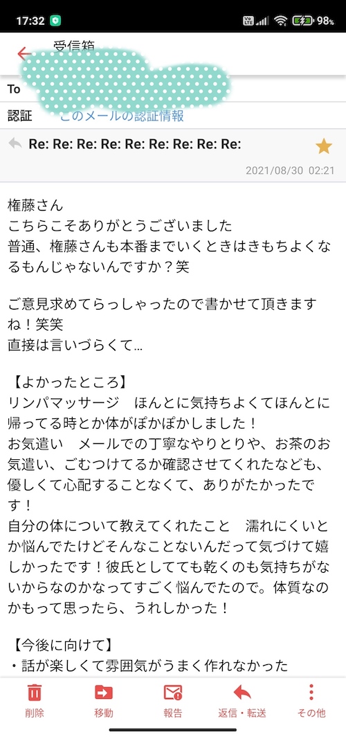 名前はMさん。関西在住の20代ということです。私の施術可能範囲は基本的に県内なのですが、隣県まででしたら出張しています。
