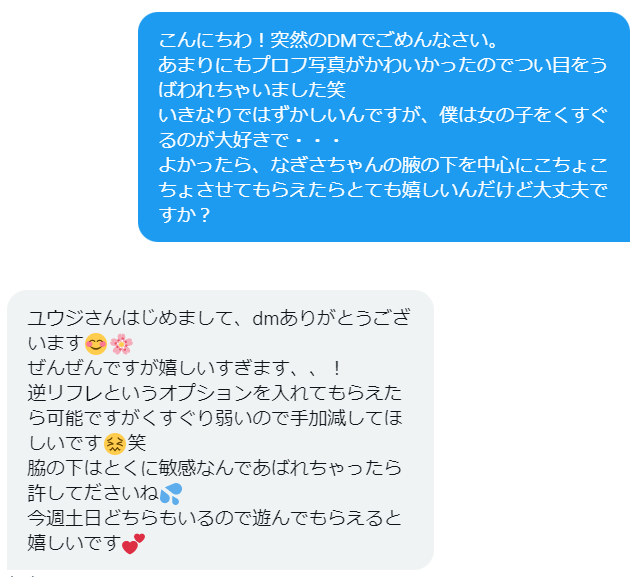 女の子をくすぐるのが大好きな僕は、メッセージをすると「わきの下が敏感」なんていう超興奮するメッセージをもらえてその時点でたのしめました笑