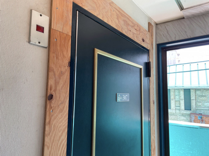 手作り感のある木枠のドアが避暑地の民泊物件のような風情を感じさせてくれます。