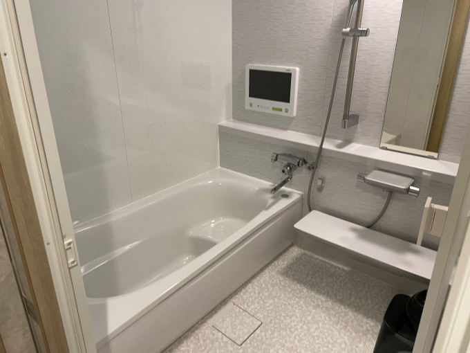 バスルームは広めで十分に混浴を楽しめるサイズ。水圧、湯量ともに申し分なし。