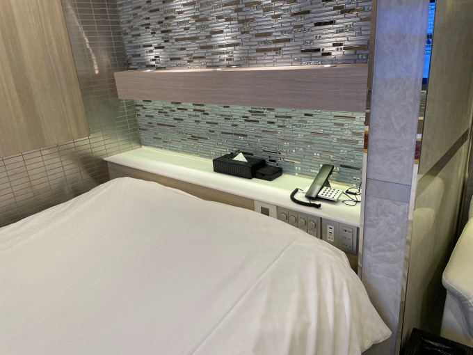 ベッドサイドもコンパクトにまとめられており、すっきりしていました。