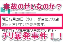 まさかこれってチリ事件は関係している?と思わせるような臨時休業の案内です。12/20お休みって、他の子、あるいは隣の常連がチクったのか?あるいは傘?まさかそこまではないとは思いますが、絶対に隣の様子がおかしいのは雰囲気で伝わったはずですから…とにかく健全店ですからね。