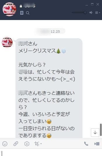 そしてSから届いた最後のLINEは12月25日「メリークリスマス」という言葉が、最後のやり取りになってしまいました。