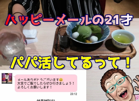 かたくなに「大宮で会いたい」というAちゃん、横浜からは遠いんですけどまあピチピチの20代です文句は言えません。ハッピーメールのやり取りの中では、「もしかして?」とは思ってましたが、やはり他のサイトでバリバリのパパ活をやっている女子でした。