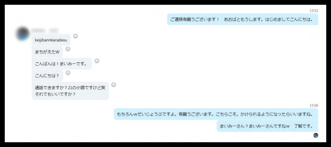 上のやりとりは、初めて彼女がコンタクトを送ってくれた時のものです。