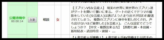 このイメチャをするためのサイト「ラブルーム」の待機部屋には…