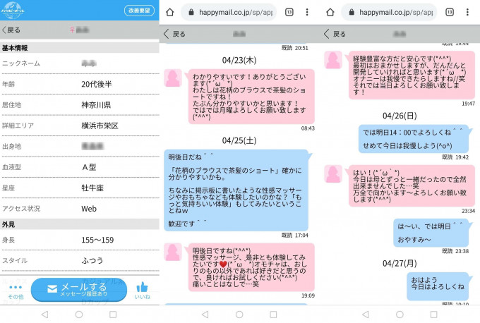 ハッピーメールの「クンニ・アロマ性感マッサージ」掲示板でした。