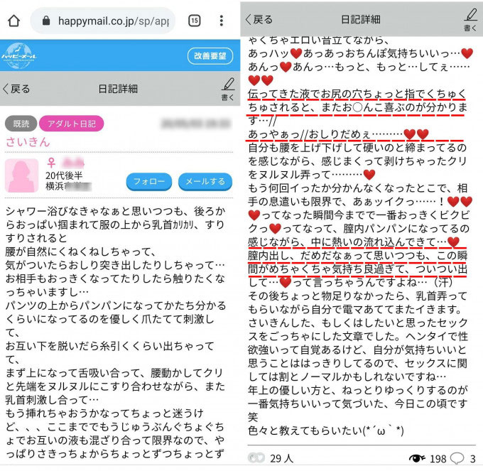 ▲Aちゃんのハッピーメール日記wしっかり書いてます
