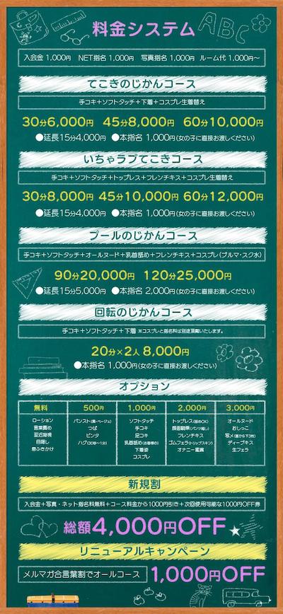 いちゃラブてこきコースで十分楽しむことができましたが、実はこのお店、オールヌード&スク水コスプレの「プールのじかん」という上級コースもあるようです。
