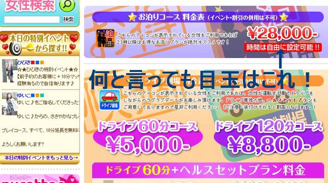 このグループのホームページはできればパソコンで見てください。なぜか?キャンペーンはもちろん、女性と男性客とのやりとりが見える掲示板があったり、とにかくサイト全体のボリュームが半端ではありません。