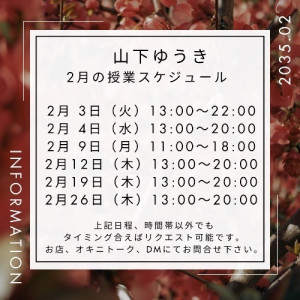 山下ゆうき先生💙2月スケジュール