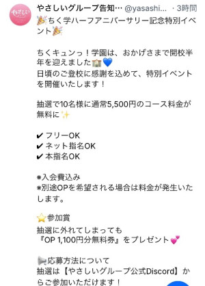 | 店名 | 甘サド乳首責め専門「ちくキュンっ!学園」~あの日の乳首責めを僕は忘れない~ |