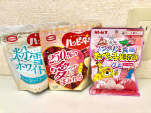 ハッピーターンの期間限定の2種類の味とたべっ子どうぶつのグミもお家で美味しく頂きますね??