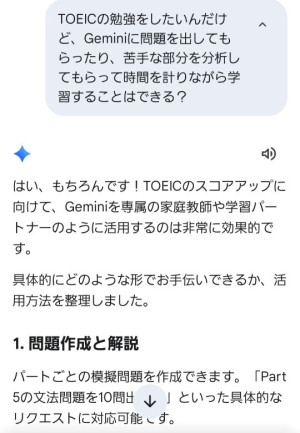 GeminiにTOEICの勉強教えて!
