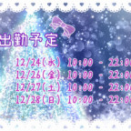明日からいます!年始までの予定です♡