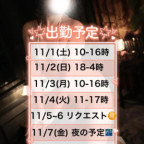 💎【出勤予定】11月1日〜11月9日💋