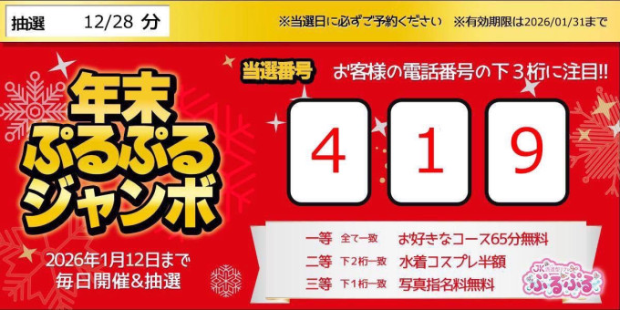 当たれば無料を今年は12月20日から1月12日まで毎日抽選‼️