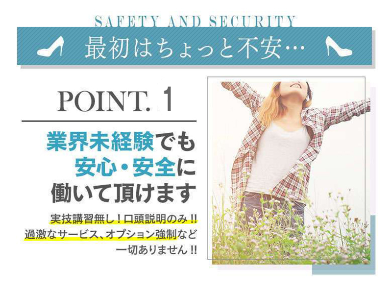 | 勤務時間 | 朝9時~22時の間で時間は完全自由出勤 。 例えば「昼のパート代わりに働きたい」や「会社が休みの土曜日だけ」などといったご希望から、「目標金額○○万円稼ぎたい」などぜひお気軽にご相談ください。 当店は自由出勤ですし、サポート体制万全なので 誰にもバレずにお仕事していただけます! ※急な当日出勤や、お子様の都合による シフト変更などがあっても柔軟に対応いたします! |