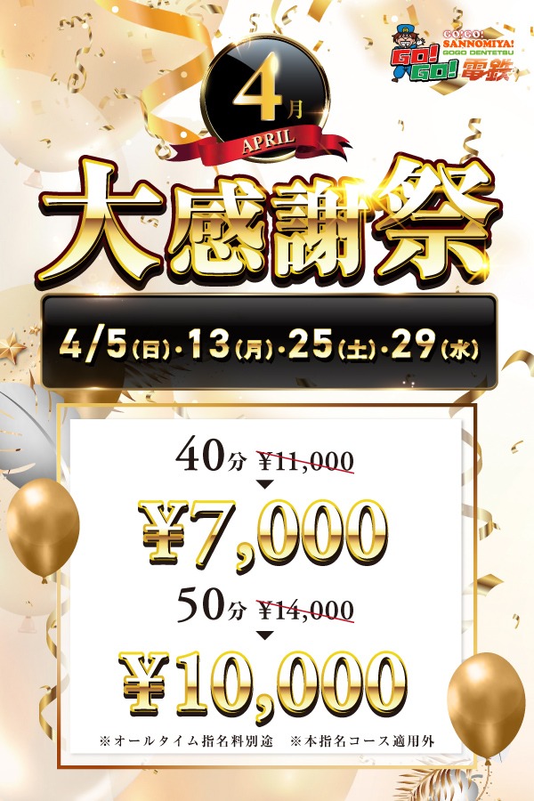 4,000円引き!!40分コース11,000円→7,000円