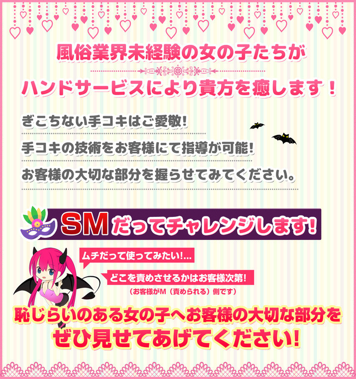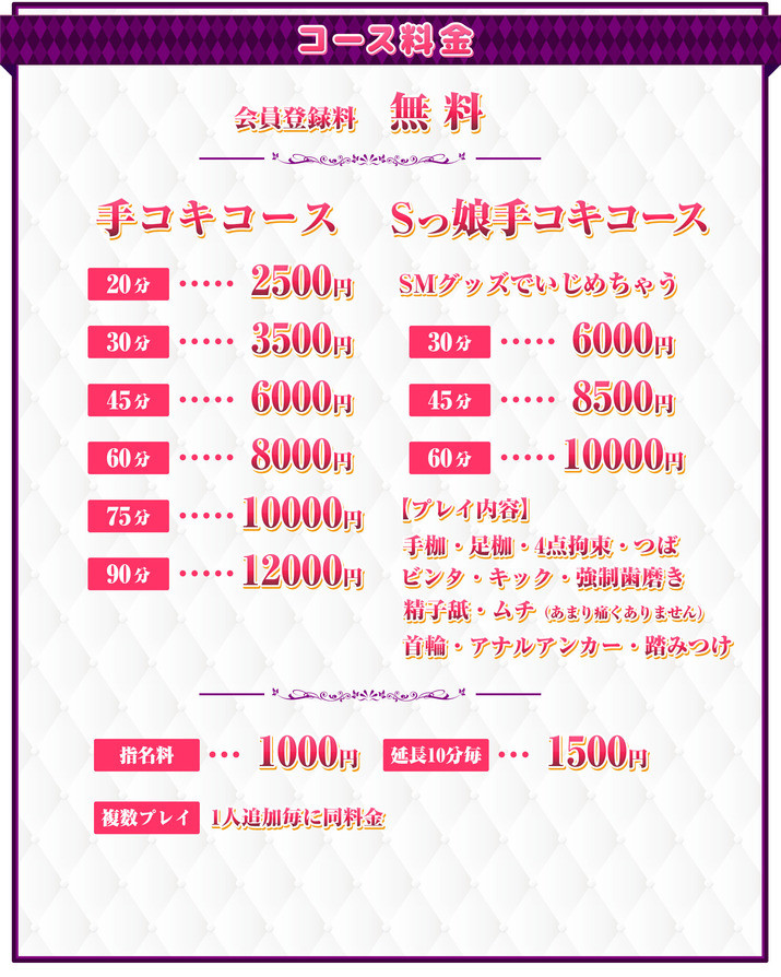 | 【手コキコース】と【Sっ娘手コキコース】の2種類のコースよりお好きなコースを選択