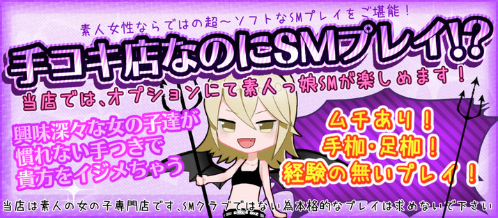 素人好きの男性、いじめられたい男性、SM未経験の男性などなど是非ご利用ください。 随時お得なイベントを開催しておりますのでホームページを要チェック☆ メルマガ会員様になれば次回イベント情報が丸分かり! http://deviln.com/top/ | |
