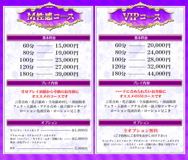 M性感コース80分 17,000円 → 15,000円