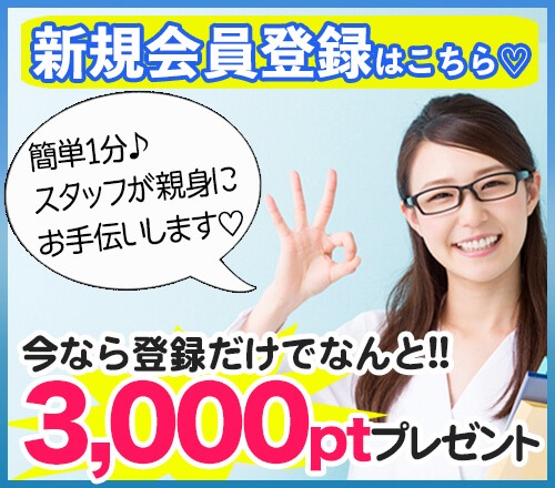 新規会員登録は今がお得!通常1000Ptが3000Ptに増量♪